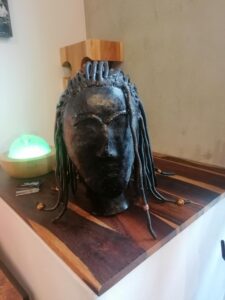 Hier bekommst du in einem rustikalen Ambiente mein ganzes Wissen als professionelle Dreadlockstylistin, meine Expertise, maximale Qualität sowie Pflegeprodukte (RAW ROOTs), Schmuck und Accessoires.